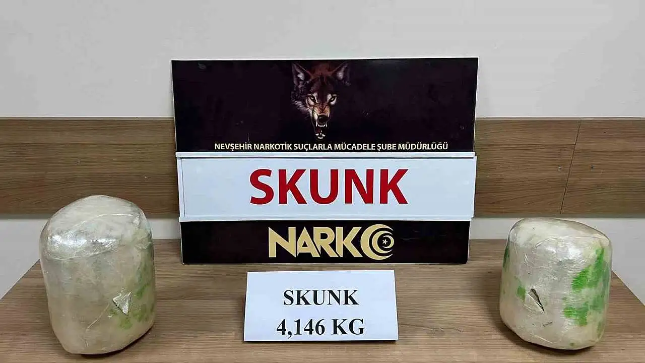 Edinilen bilgiye göre Nevşehir Emniyet Müdürlüğü Narkotik Suçlarla Mücadele ve İstihbarat Şube Müdürlüğü ekipleri uyuşturucu madde kullanan, ticaretini ve sevkini yapan şahısların deşifresine yönelik çalışma yaptı. Yapılan teknik takip sonucu “Nitelikli Dolandırıcılık” Suçlarından 11 adet aranması bulunan M.E yakalanarak gözaltına alında. Şahsın yapılan üst aramasında 4,146 kg. uyuşturucu madde ele geçirildi.