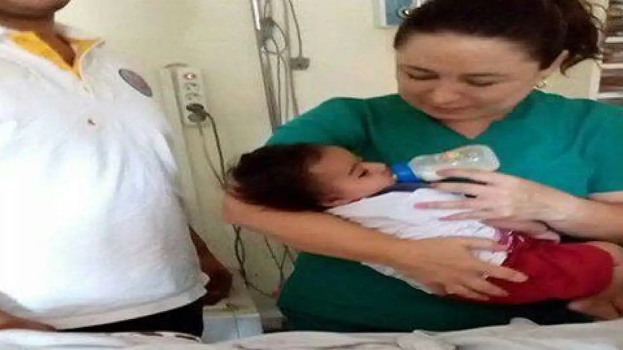 Sağlık durumunun iyi olduğu öğrenilen bebeğin karnı hemşireler tarafından doyuruldu. Bebeğin gözetim altında tutulduğu, ailenin bulunması için çalışma başlatıldığı bildirildi. HABER-FOTO: İHA