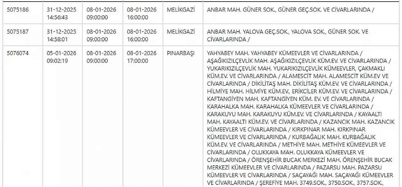 8 Ocak 2026 Kayseri'nin çeşitli noktalarında elektrik kesintileri yaşanacak!