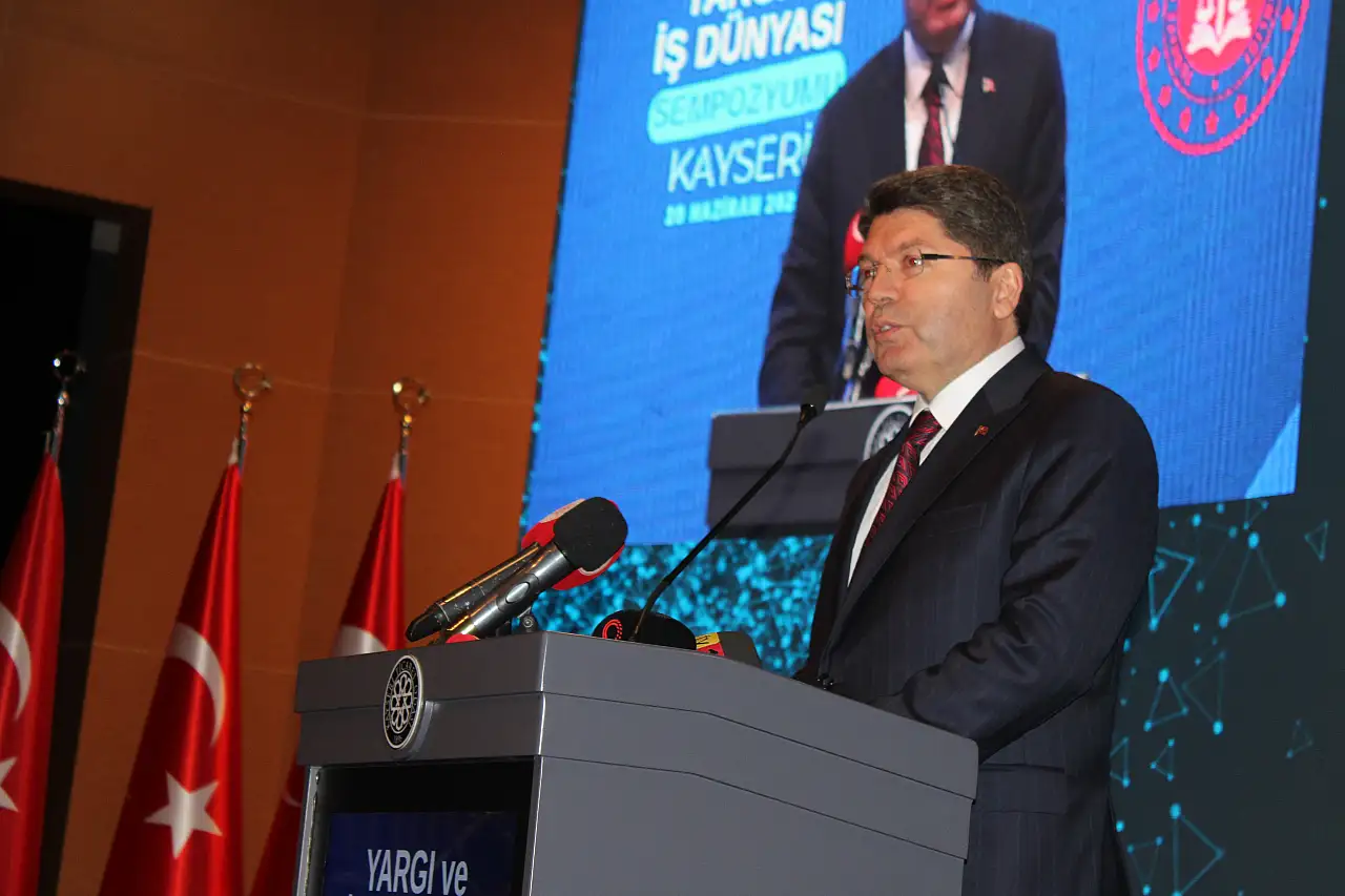 Kayseri’de düzenlenen Yargı ve İş Dünyası Sempozyumu’nda konuşan Adalet Bakanı Yılmaz Tunç, ‘Attığımız tüm bu adımlara ve reformlara rağmen ülkemizde hukuk güvenliği olmadığı yönünde kara propaganda yapanlar, masa başında Türkiye gerçekleriyle uyuşmayan endekslerle ülkemizi karalamaya çalışanlar milletimize de iş dünyamıza da yargı camiamıza da büyük haksızlık ediyorlar’ dedi.