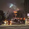 Alevlerin yükseldiği fabrikada itfaiyenin soğutma çalışması devam ediyor.