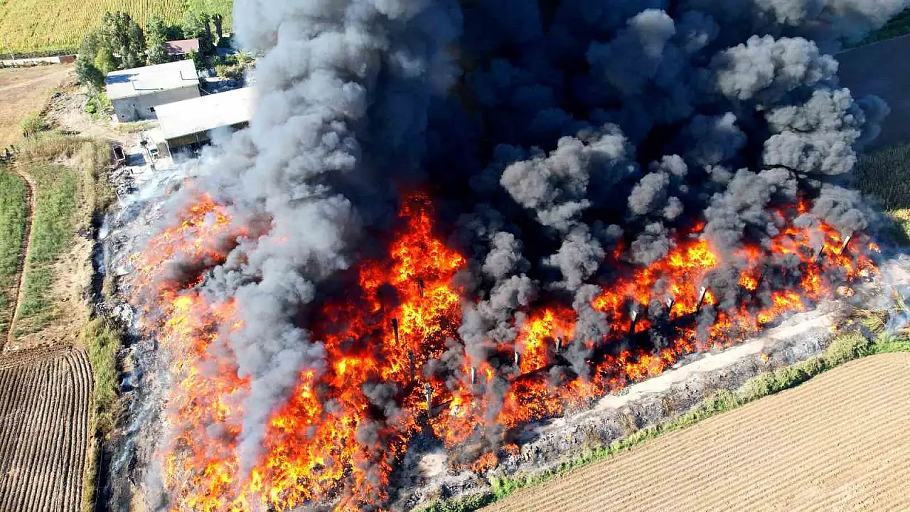 Adana'da geri dönüşüm fabrikasının bahçesinde yangın çıktı!