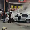 Adana’da hareket halindeyken yanmaya başlayan otomobili esnaf su ve yangın tüpüyle söndürdü.