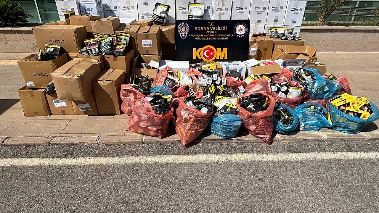 Alınan bilgiye göre, İl Emniyet Müdürlüğü Kaçakçılık ve Organize Suçlarla Mücadele (KOM) Şube Müdürlüğü ekiplerince, kaçakçılık suçlarının önlenmesine yönelik il merkezi ve Ceyhan ilçesinde eş zamanlı operasyon düzenlendi. Belirlenen adreslere yapılan baskınlarda 869 bin 200 adet makaron, 56 bin 700 adet doldurulmuş sigara, 2 ton 263 kilogram kıyılmış tütün, bin 954 paket bandrolsüz sigara, 85 kilogram nargile tütünü, 129 adet elektronik sigara likidi, 16 adet akıllı telefon, 138 adet kaçak doldurulmuş tüp ve 3 hava kompresörü ele geçirildi. Ayrıca LPG dolumunda kullanılan çok sayıda malzeme de operasyon kapsamında bulundu. Eş zamanlı baskınlarda 20 şüpheli gözaltına alındı