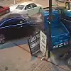 Yaralananın olmadığı kaza anı, bir iş yerinin güvenlik kamerasına ve araç kamerasına yansıdı.