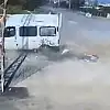 Kaza anı ise güvenlik kamerasına saniye saniye yansıdı.
