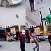 Görüntülerde, sallantının yanı sıra bir tuğlanın düşmesi ve yola çıkan insanların anlık duraksayıp ardından kaçışmaları yer aldı.