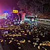 Çarpışmanın etkisiyle limon yüklü kamyonet otoyolda yan yatarken, kasasındaki ürünler yola saçıldı.