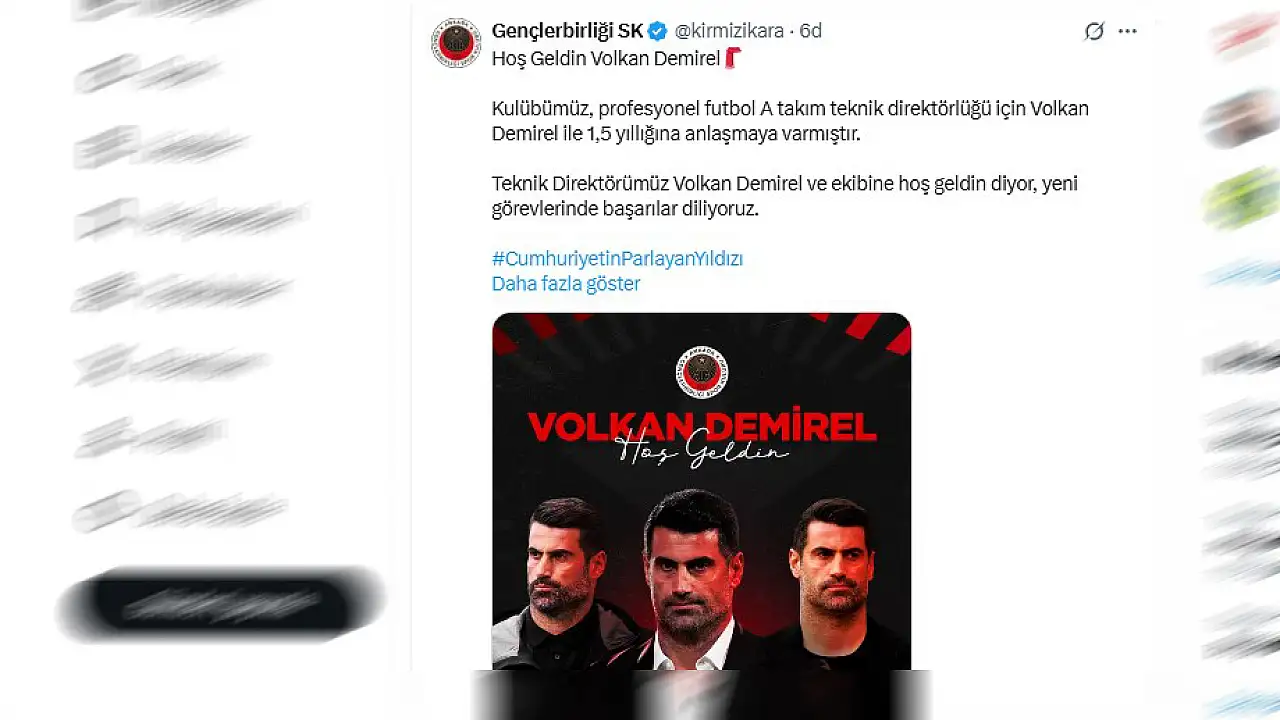Gazeteci Yağız Sabuncuoğlu, Gençlerbirliği’nde yaşanan ayrılığı kamuoyuna duyurduktan sonra, “ÖZEL | Gençlerbirliği, Teknik Direktör Volkan Demirel ile anlaşmaya vardı! Demirel, resmi imza için bugün öğle saatlerinde Ankara’da olacak” bilgini paylaştı.