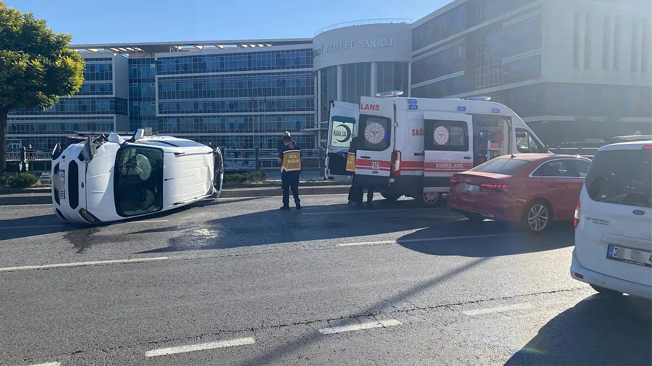 Adliye Kavşağı'nda trafik kazası! Ticari araç devrildi...