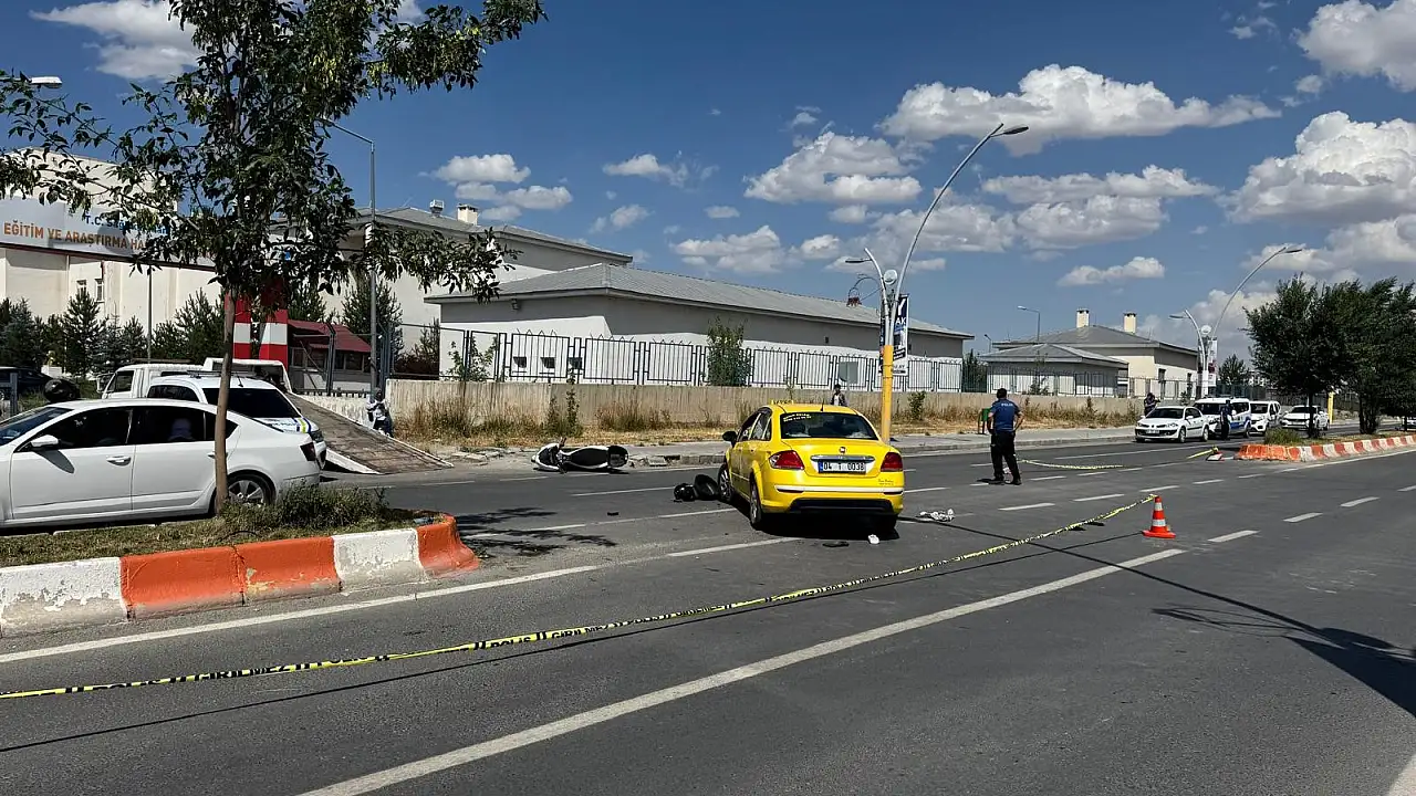 Edinilen bilgiye göre, kaza saat 13.45 sıralarında Erzurum Caddesi üzerinde meydana geldi. Hasan Taylı (61) yönetimindeki 34 LE 8986 plakalı motosiklet, Ağrı Eğitim ve Araştırma Hastanesi ek binası önünde U dönüşü yapmak için duraklayan Mahir A. idaresindeki 04 T 0038 plakalı ticari taksinin arka tamponuna çarptı. Çarpmanın etkisiyle motosiklet sürücüsü Hasan Taylı ile arkasında yolcu olarak bulunan eşi Miyase Taylı (59) metrelerce savrularak ağır yaralandı. Kazayı gören vatandaşların ihbarı üzerine olay yerine 112 Acil Sağlık ve polis ekipleri sevk edildi.