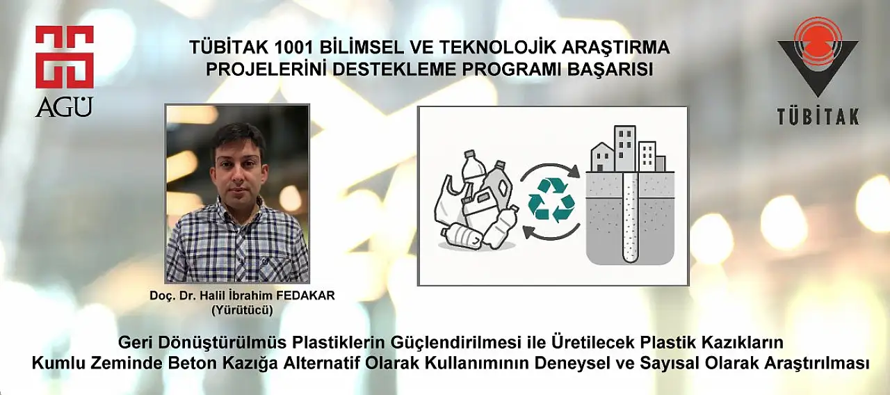 ‘Geri Dönüştürülmüş Plastiklerin Güçlendirilmesi ile Üretilecek Plastik Kazıkların Kumlu Zeminde Beton Kazığa Alternatif Olarak Kullanımının Deneysel ve Sayısal Olarak Araştırılması’ konulu proje, AGÜ ve İskenderun Teknik Üniversitesi (İSTE) iş birliğiyle yürütülüyor.