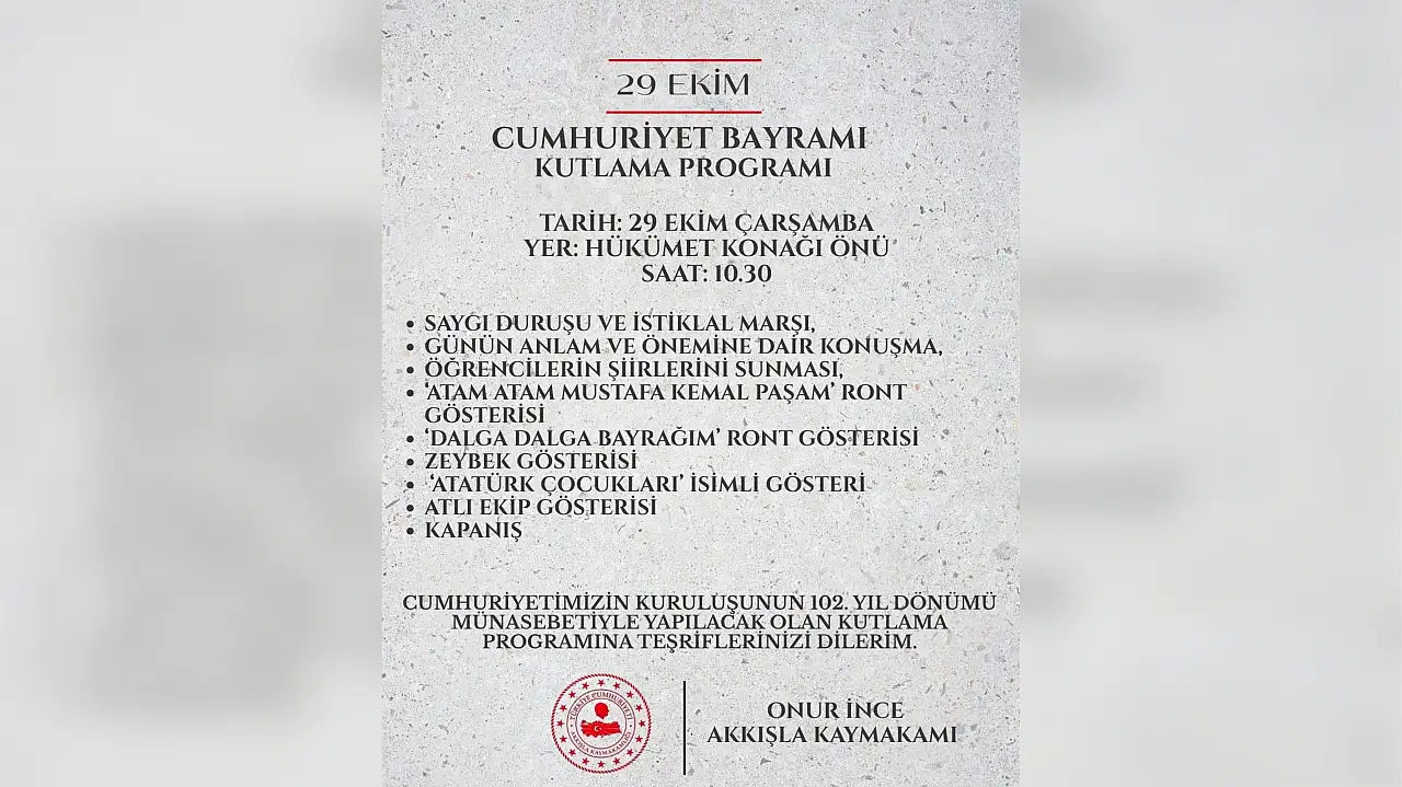 Akkışla'da 29 Ekim Cumhuriyet Bayramı tören programı belli oldu!