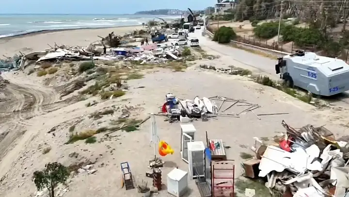 Karataş Kaymakamlığı koordinesinde 28 Mayıs 2025 Çarşamba günü sahil boyunca yer alan 5 ayrı bölgede, toplam 138 kaçak yapının yıkımı gerçekleştirildi. Yürütmeyi durdurma kararı alan yapılar hariç olmak üzere tüm kaçak yapılar, gece ve gündüz yürütülen çalışmalarla yıkıldı. 1 Haziran'da kamu yararı gözetilerek gerçekleştirilen yıkım çalışmalarına tepki gösteren H.G. isimli bir şahıs, Karataş Kaymakamlığı binasına taşla saldırıda bulunması üzerine gözaltına alındı. Binanın camlarını kıran ve kaçak yapı sahiplerince azmettirildiği değerlendirilen H.G. adli makamlarca tutuklandı. Olaya karıştığı belirlenerek gözaltına alınan M.Y. ile S.Y. ise adli kontrol şartıyla serbest bırakıldı.