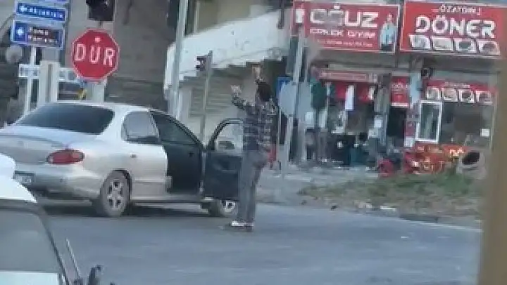 Yozgat'ta alkollü bir kişinin aracından inerek trafikteki ilginç hareketleri cep telefonu kamerasına yansıdı.