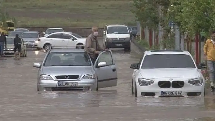 Kayseri'de sağanak yağış etkili oldu, araçlar mahsur kaldı