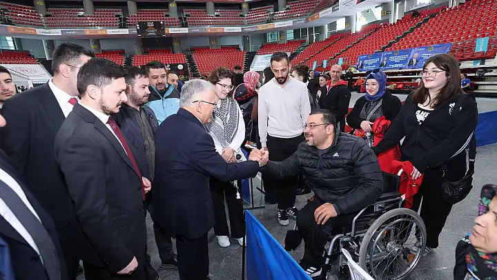 Kayseri Büyükşehir Belediye Başkanı Memduh Büyükkılıç, Kadir Has Kongre ve Spor Merkezi'nde Türkiye Bilek Güreşi Şampiyonası'nda yarışan sporcularla bir araya geldi.