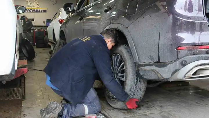 Sivas'ta Ata Sanayi Sitesi'nde hizmet veren bir lastikçi dükkanı işlerini aksatmamak ve müşterilerini mağdur etmemek için bu özel günde de çalıştı. Sabahın erken saatlerinde kepenk açan esnaf, otomobil lastikleri değiştirerek, evlerine ekmek götürme derdine düştü.