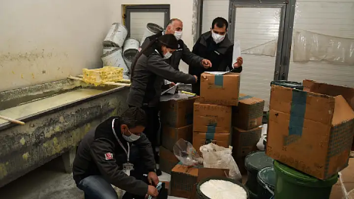 Kayseri'de sahte peynir üretilen işletmeye yapılan baskında, sağlıksız 3 ton süt ürünü imha edildi