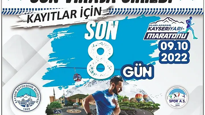 Kayseri Büyükşehir Belediyesi tarafından ikincisi düzenlenecek, ulusal ve uluslararası birçok yarışmacının katılımıyla büyük heyecana sahne olacak Kayseri Yarı Maratonu'nda kayıtların sona ermesine sayılı günler kaldı.