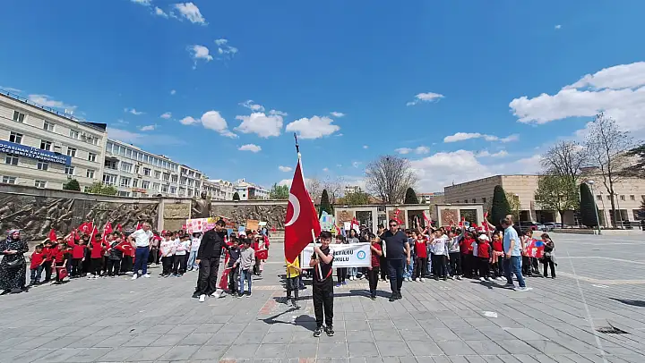 Öğlen saatlerinde başlayan etkinlikte öğrenciler, önce Cumhuriyet Meydanı’nda bir araya geldi. Alanda toplanan öğrenciler, 23 Nisan’a özel hazırlanan bayraklar taşıyarak ‘23 Nisan kutlu olsun’ sloganları attı.