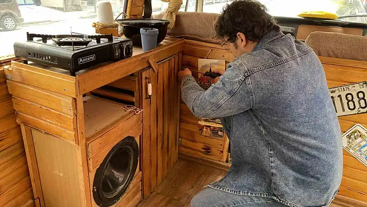 İçi daha da iyi olacak inşallah. Millet hep, 'Bu arabalar yol gider mi?' diye düşünüyor. Ben Hataylıyım, Antakya depreminden sonra buraya yerleştim. Yaklaşık 2 senedir buradayım. Antakya'ya 12 kez gidip geldim. Bütün eşyalarımı bu araca koyup geldim, Eskişehir'de yeni bir hayata başladım. Gidecek yerim yoktu, 1 hafta Kanlıkavak'ta kaldım. Çok şükür, sonra bir iş buldum. Evimi de tuttum, bu aracı artık sadece hafta sonları kamp için kullanıyorum.