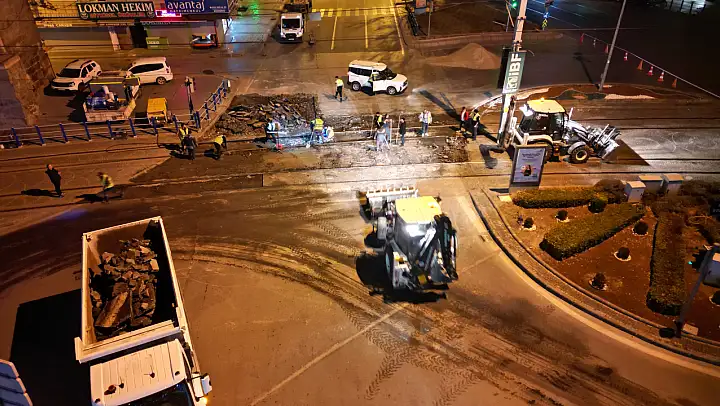 Düvenönü Kavşağı'nda gece boyu tramvay bakım çalışması yapıldı!