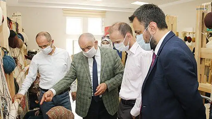 Yahyalı Belediye Başkanı Esat Öztürk, Yahyalı Kaymakamı Yunus Emre Altıner ve Kayseri İl Kültür ve Turizm müdürü Dr. Şükrü Dursun ile ilçede Avrupa Birliği finansörlüğünde açılan Yahyalı El Halısı dokuma kursunu ziyaret etti.