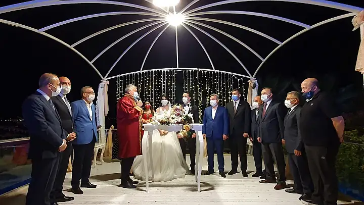 Vali Şehmus Günaydın, Büyükşehir Belediye Başkanı Memduh Büyükkılıç ve Milletvekili Baki Ersoy çiftin nikah şahitliğini de yaptı.