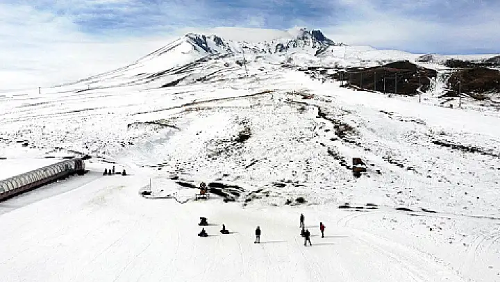 Sokağa çıkma kısıtlamasının 4. haftasında Türkiye'nin önemli kış turizmi merkezlerinden Erciyes Kayak Merkezi sakin bir hafta sonu geçiriyor. Erciyes'in sakinliğinden yararlanan turistler ise kayak yaparak eğlenceli anlar geçirdi.