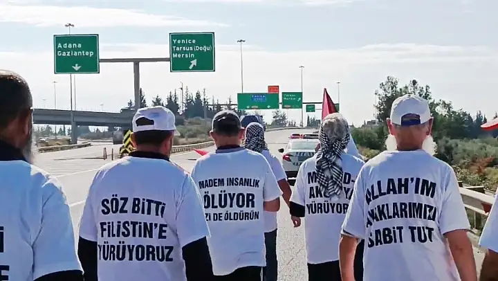 İsrail'in işgal ettiği topraklarda Filistinli Müslümanlara yönelik katliamları protesto etmek ve Filistin halkına destek vermek için Kayseri şehir merkezinden başlayan 'Filistin Yürüyüşü' devam ediyor. İncesu-Yeşilhisar-Niğde, Pozantı ve Damalma mevkii Pelit tesislerinden Tarsus Yenice istikametine yürüyüşünü sürdüren yaklaşık 25 kişilik kafile, Türkiye'nin farklı illerinden yürüyüşe katılanlarla yoluna devam ediyor. Yürüyüş kafilesinin 250 kilometre katederek bu akşam Mersin'in Tarsus ilçesine bağlı Yenice beldesine ulaşması, cumartesi akşamına doğru da Adana'da olması bekleniyor.