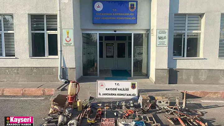 Kayseri İl Jandarma Komutanlığı Kocasinan Merkez Jandarma Karakol Komutanlığı ekipleri tarafından Akın Mahallesi'nde önleyici kolluk devriyesi başlatıldı. Devriye sırasında durumundan şüphelenilen bir araç durduruldu. Araç içerisindeki E.K.'nin çelişkili ifadeleri nedeni ile araçta yapılan aramalarda 1 adet kaynak makinası, 1 adet basınçlı yıkama makinası 2 adet zımpara, 1 adet hidrolik kriko, 1 adet şarjlı matkap, 1 adet spiral makinası, 1 adet havalı rende zimparasi, 1 adet 1.5 tonluk manuel kriko, 1 adet 10 tonluk calaska, 1 adet rot başı ve aracın 50 metre uzağında çukur içerisinde 2 adet havalı piston, 1 adet levye, 1 adet lastik şişirme pompası ve 2 adet fayans tokmağı bulundu.