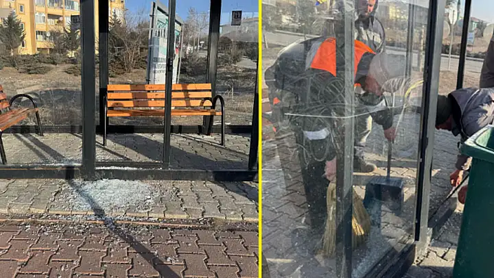 Kayseri'nin İncesu ilçesinde kimliği belirsiz kişiler tarafından kapalı durağın camları kırıldı. Vatandaşlardan gelen şikayet üzerine İncesu Belediyesi ekipleri hızla harekete geçerek zararı giderdi.