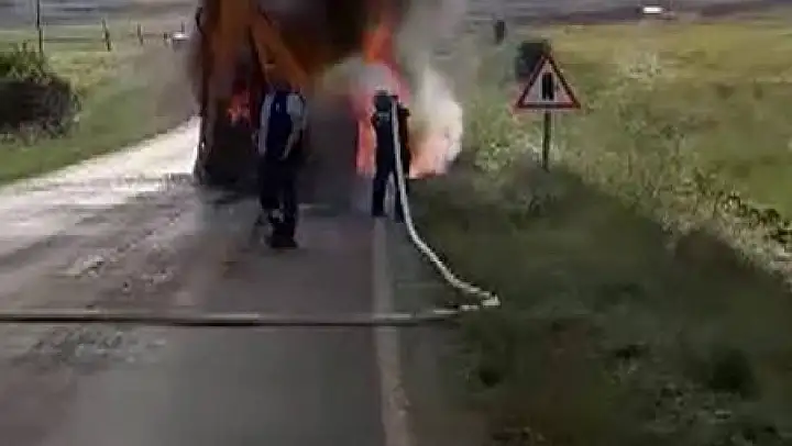 Yangın, ilçeye bağlı Pınarlar Mahallesi'nde meydana geldi. İddiaya göre, sürücüsünün ismi ve plakası öğrenilemeyen iş makinesinin motor kısmında henüz belirlenemeyen bir sebeple yangın çıktı. Sürücü iş makinesini sağa çekip dışarı çıkarken kısa sürede alevler tüm aracı kapladı.