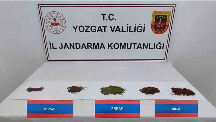 Yozgat'ın Sorgun ilçesinde A.T. ve M.M. isimli şahıslarla ilgili ihbarı değerlendiren Jandarma ekipleri, şüphelilerin aracında yaptığı aramada 35,20 gram bonzai ve 9,25 gram esrar yakaladı. Gözaltına alınan şahıslar hakkındaki işlemlerin sürdüğü öğrenildi.