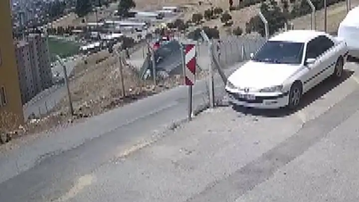 Kahramanmaraş'ta hafif ticari aracın istinat duvarı olmayan sitenin boşluğuna yuvarlanması güvenlik kamerasınca kaydedildi. Detaylar Kayseri Anadolu Haber'de...