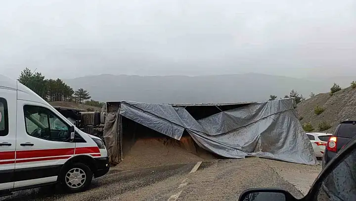 Kahramanmaraş'ta kamyonun devrilmesi sonucu sürücü yaralandı.