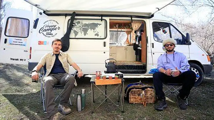 Ankara'da bir minibüsü kendi imkanlarıyla karavana dönüştüren iki arkadaş, başkentten çıktıkları yolculuklarını 81 ili gezerek tamamlamak istiyor.