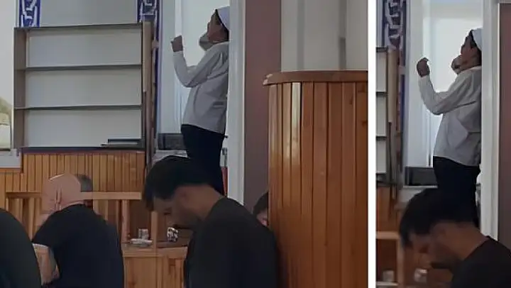 Kayseri'de 12-13 yaşlarındaki çocuk karnesini aldıktan sonra Cuma ezanını okumak için camiye koştu. Ezan okuyan çocuk camideki vatandaşların kamerasına böyle yansıdı. Detaylar Kayseri Anadolu Haber'in bülteninde…