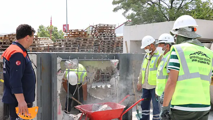 Kayseri'de olası afet senaryolarına karşı hazırlıklar hız kazanıyor. Afet ve Acil Durum Yönetimi Başkanlığı (AFAD) İl Müdürlüğü ekipleri, Büyükşehir Belediyesi personellerine yönelik 'Enkazda Arama ve Kurtarma Eğitimi' düzenledi. Belediyenin Afet İşleri Daire Başkanlığı koordinesinde yürütülen eğitim çalışmasında, 34 personel sahada aktif görev alabilecek düzeyde donatıldı.