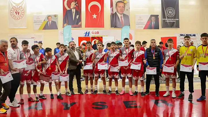 Kayseri Atatürk Spor Salonu'nda 5 gün devam eden Okul Sporları Futsal Yıldız Erkekler Türkiye İl Birinciliği yapılan final müsabakaları ile tamamlandı. Müsabakalarda dereceye giren sporculara düzenlenen tören ile kupa ve madalyaları Melikgazi Gençlik ve Spor İlçe Müdürü Atalay Yaman, Okul Sporları Şube Müdürü Ahmet Metin ve Sportif Faaliyetler Şube Müdürü Yakup Deliktaş tarafından takdim edildi. Dereceye giren okul takımları ise şu şekilde: