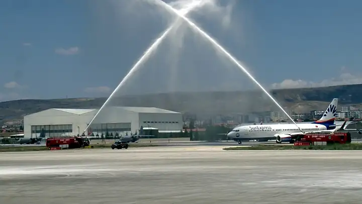 Avrupa Kayserili İşverenler Birliği (AKİB) yönetimi ve gurbetçi vatandaşları taşıyan uçak, Kayseri Havalimanı'na inişi sırasında havacılık geleneği olan 'su selamlaması' ile karşılandı.