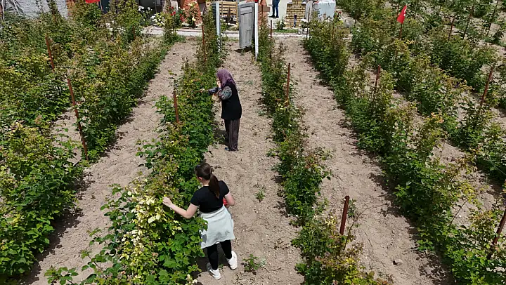 Burası organik, herhangi bir ilaç takviyesi yapmıyoruz. Ben ilklerdenim, Kayseri'de başka yok. Bunu bildiğimiz için bu işe girdik ve şuanda üst seviyeye geldi. Talebe yetişemiyoruz. Sosyal medyada paylaştığımız zaman buraya gelen vatandaşlarımız boş gidiyor. Bu sezon İç Anadolu Bölgesi'nde don olayları gerçekleşti. Bu don olayından biz de nasibimizi aldık, böğürtlenlerimizi bu sene soğuk aldı. Ahududularımız etkilenmedi, şuanda çok güzeller ve talebe yetişemiyoruz. Burada iki tane yerimiz var. Baraja karşı kır bahçemiz çok güzel, otantik bir yer. Böğürtlen bahçemizde de güzel bir mekanımız var. Vatandaşlarımızı karşılıyoruz' dedi.