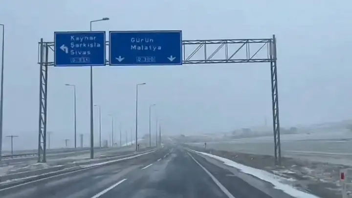 Kayseri/Sivas Karayolu: Hava kapalı, yağış yok, zemin ıslak. Yol trafiğe açık.