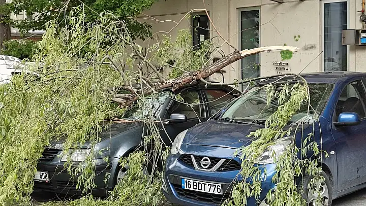 Kayseri'de rüzgardan kırılan ağaç otomobillerin üzerine düştü!