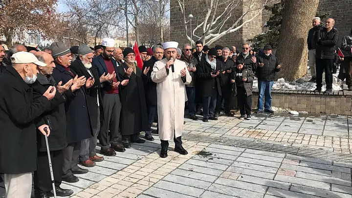 Gönüllü Kültür Kuruluşları Başkanı Ahmet Taş topluluk adına yaptığı konuşmasında, 'Amerika Birleşik Devletleri'nin yeni seçilen başkanı Donald Trump, tıpkı Amerika Birleşik Devletleri'nin önceki başkanları gibi, ülkesinin İsrail'in emrinde olduğunu ilan etti. Ülkesine davet ettiği İsrail'in çocuk katili Başbakanı Netenyahu ile Gazze'yi boşaltarak Müslümanları özyurtlardan çıkarma konusunda anlaştığını duyurdu. Tramp konuyla ilgili yaptığı açıklamada, 471 gün vatanlarını, katil işgalcilere karşı savunan on binlercesi şehit olup, 100 binden fazlası yaralanan Gazze halkını, Mısır ve Ürdün'e göndereceğini, Gazze'ninde Amerika Birleşik Devletleri'ne verilip tatil beldesi yapılacağını duyurdu' dedi.