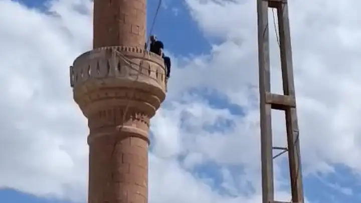 Kayseri'de yürekleri ağza getiren anlar! Minareye çıktı...