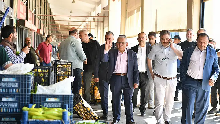 Başkan Büyükkılıç'a, hal kompleksi ziyaretinde Büyükşehir Belediyesi Genel Sekreter Yardımcıları Ufuk Sekmen ve Mücahid Soyak ile daire başkanları da eşlik etti.