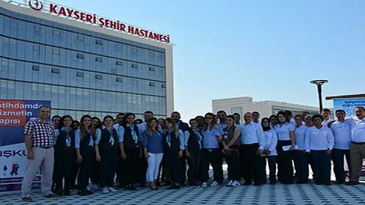 İŞKUR' un İşbaşı Eğitim Programı kapsamında Kayseri Şehir Hastanesi bünyesinde Hastane Hizmetleri ve Hasta Danışmanı mesleklerinde 45 kursiyer çalışmaya başladı. 3 ay sürecek olan programda kursiyerler işi başında öğrenerek daha sonra istihdam edilecek.