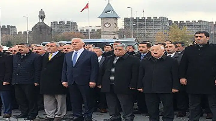 Kayseri'de 24 Kasım Öğretmenler Günü dolayısıyla Cumhuriyet Meydanındaki Atatürk Anıtı'na çelenk bırakıldı.